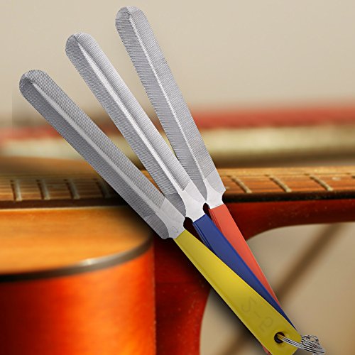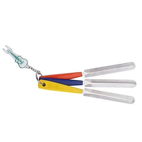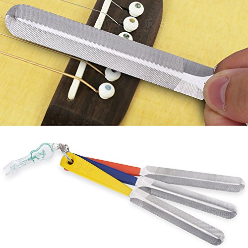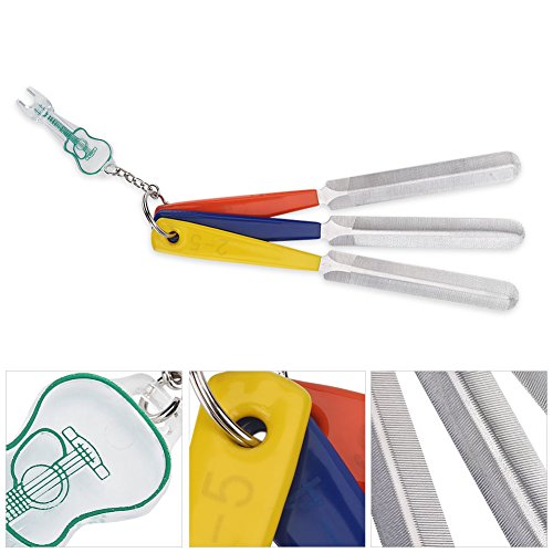 El conjunto de herramientas de archivo de tuerca de guitarra es ligero y duradero, tamaño compacto para llevar y almacenamiento fácil, con un colgante de guitarra, excelente mano de obra y buena textura, resistente al desgaste con buena eficiencia. Los tres archivos con un llavero, es muy conveniente de llevar. Gran accesorio para entusiastas de la guitarra, conveniente para la guitarra acústica y la guitarra eléctrica, casi todas las secuencias instrumento musical.