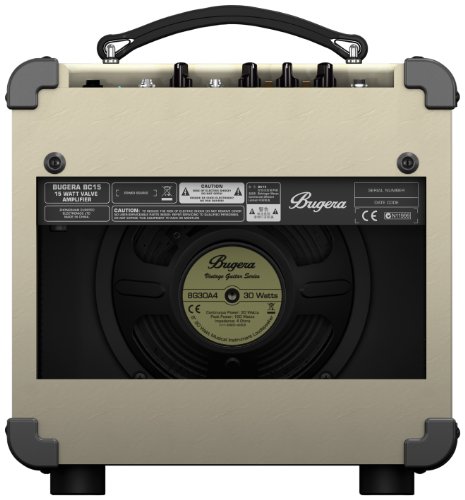 BUGERA BC15Amplificador combo a válvulas de 15w de potencia para guitarra eléctrica.El BC15 ofrece un sonido de válvulas real.Este amplificador de guitarra de doble canal de 15 vatios cuenta con una válvula 12AX7 en su etapa de preamplificador, un master de volumen y ecualizador de 2 bandas, lo que supone una amplia gama de opciones tonales.Se proporciona el botón de gain para activar el canal de lead/distorsión.Ideal para su uso en ensayos o conciertos, el BC15 lleva un altavoz de 8″ de BUGERA de diseño personalizado.El BC15 también cuenta con un conector de auriculares para sesiones de práctica privada.Amplificador de guitarra extremadamente versátil con válvula 12AX7 fabricada a mano.Diseño vintage auténtico y sonido de guitarra clásica.Previo a válvulas de 2 canales y control de ganancia de rango amplio, con todo tipo de recogida.Ecualizador de 2 bandas y botón para moldear el sonido creativo.Entrada de CD que te permite tocar simultáneamente con tu música favorita.Control de nivel master y salida de auriculares de gran alcance.Componentes de alta calidad y construcción extremadamente robusta para una larga vida.BUGERA BC15 BC 15 amplificador combo a válvulas para guitarra eléctrica