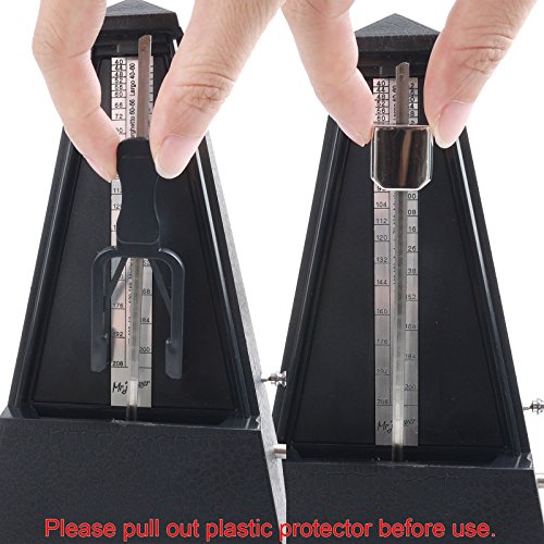Este plástico de metrónomo tiene un mecanismo de Wind Up con Swinging péndulo ajustable y Beat configuración de 0 – 6 con un rango de indicador de Bell. el tempo se puede ajustar de 40 a 208 pulsaciones por minute. y produce un click con cada latido. este metrónomo es un acabado en madera de teca para colorear y viene con una funda para mantenerlo protegido mientras no es en uso a juego instrucciones de funcionamiento: 1) para empezar a: hasta el bobinado clave en del viento. Marca la dirección de la flecha y empujar el péndulo para lado izquierdo o derecho. 2) a juego Tempo: mover el deslizamiento Peso 3 arriba o abajo para establecer su superior final en el dial.) a juego Pitch: Interruptor selector de la campana tono y ajustar la división a 2.3.4.6 o 0 4 exactamente.) después de usar: Slide el peso a la mitad o parte superior de péndulo bajo y poner en la cubierta después de usar: Slide el deslizamiento Peso a la mitad o nivel superior del péndulo y de devolver el péndulo en el gancho, a continuación, poner en la portada. notas: 1. nunca dejar de poner en la cubierta después de usar 2. evitar el uso o mantener en el lugar con polvo o humedad 3. metrónomo en caso de lubricación el uso en alta calidad reloj de pulsera aceite 4. para limpiar el metrónomo 5. nunca se es con líquidos volátiles o productos químicos.